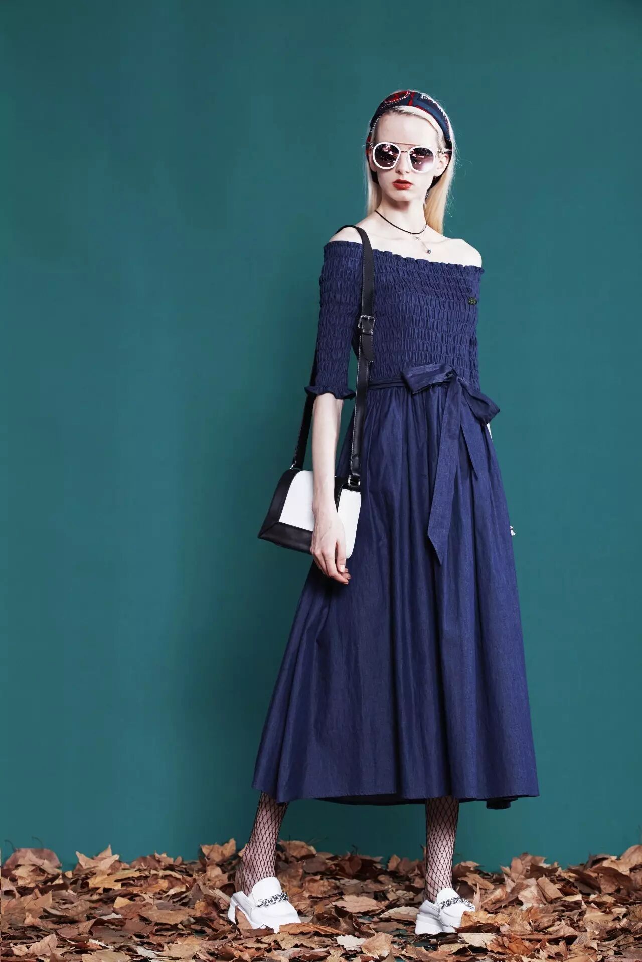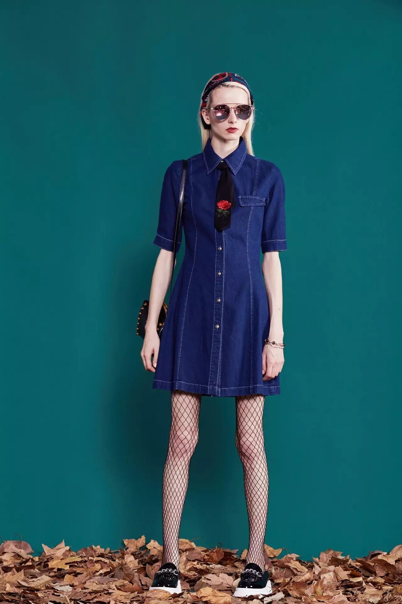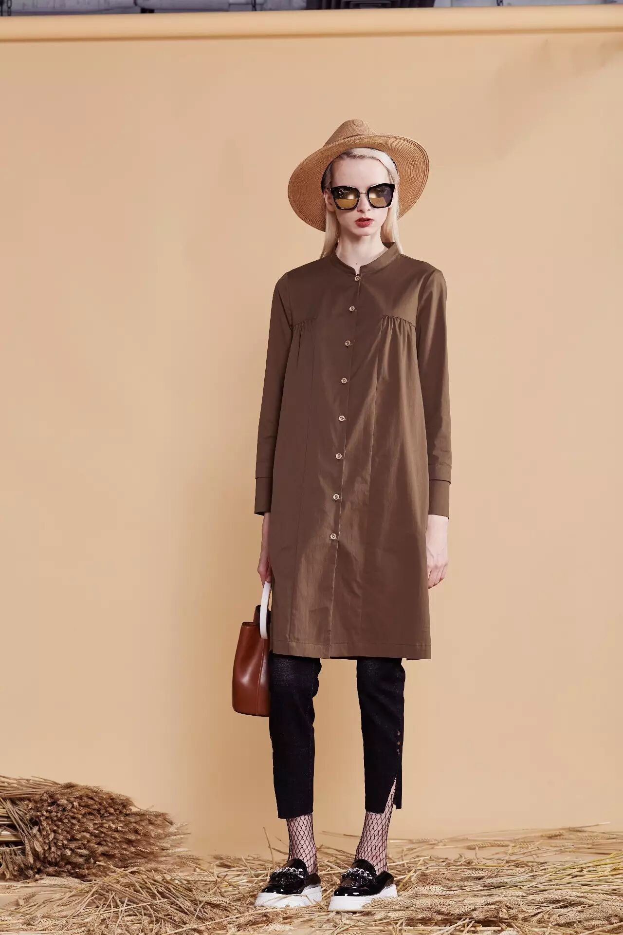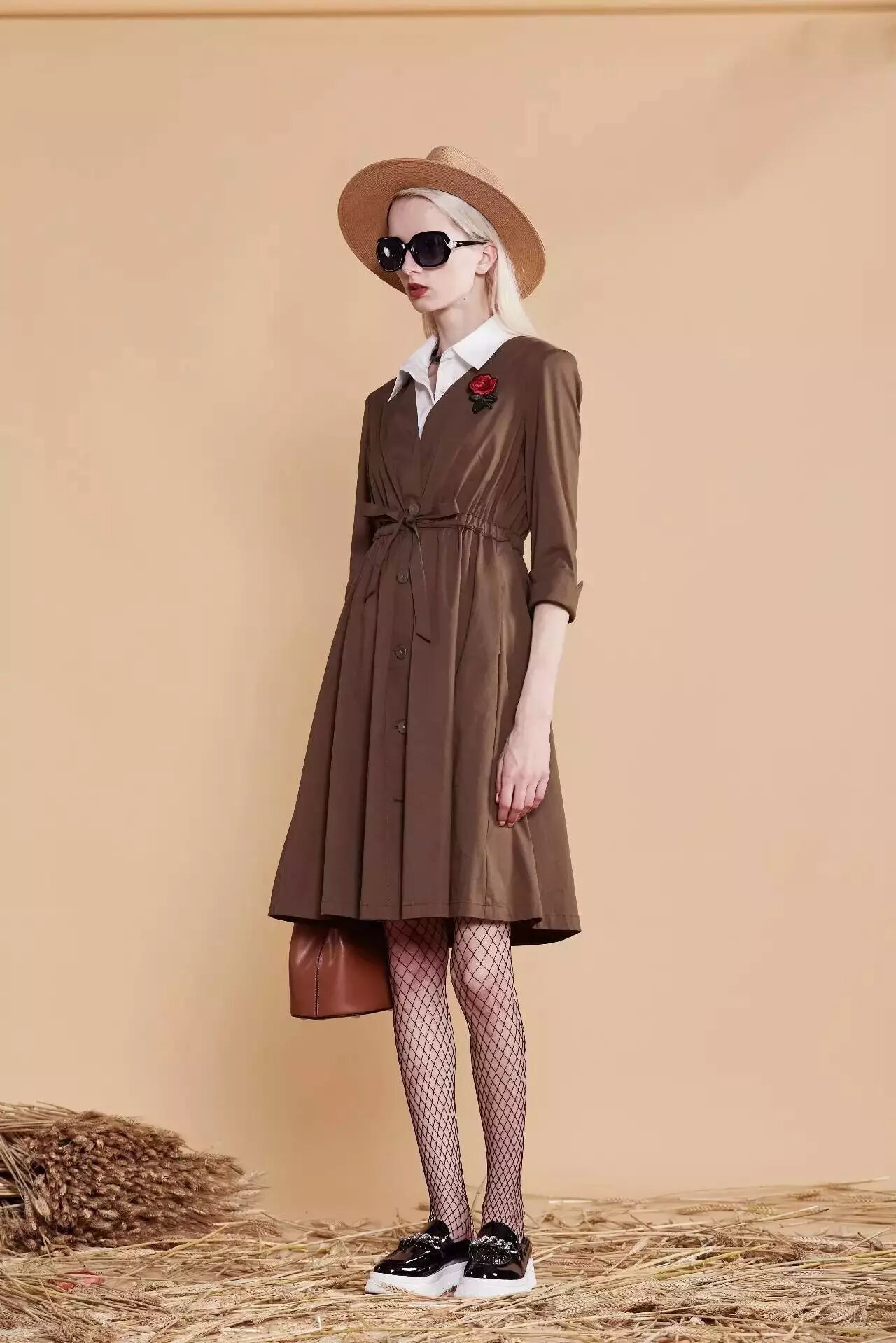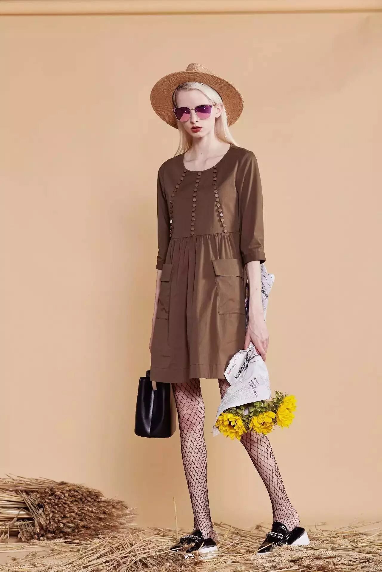 T字型的中长款连衣裙,扣子的设计点,产生完美线条修饰,休闲时尚中不失调皮。